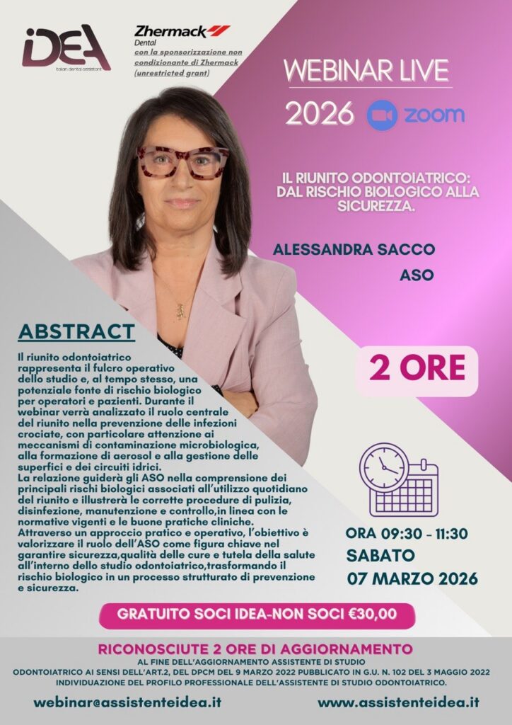 Questo webinar dedicato, pensato per gli ASO, si pone come obiettivo di trasformare la gestione del riunito in processo strutturato di prevenzione e sicurezza.